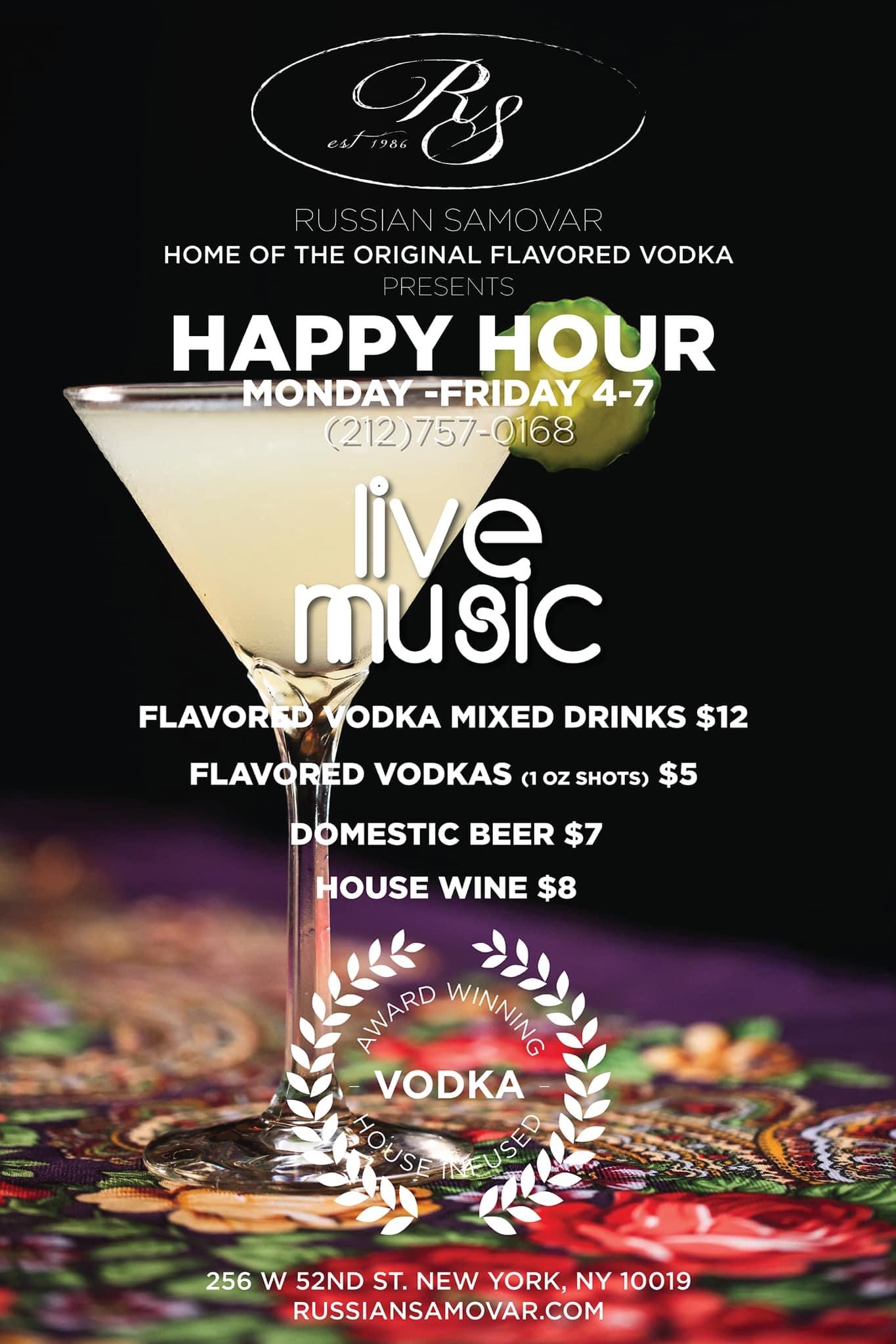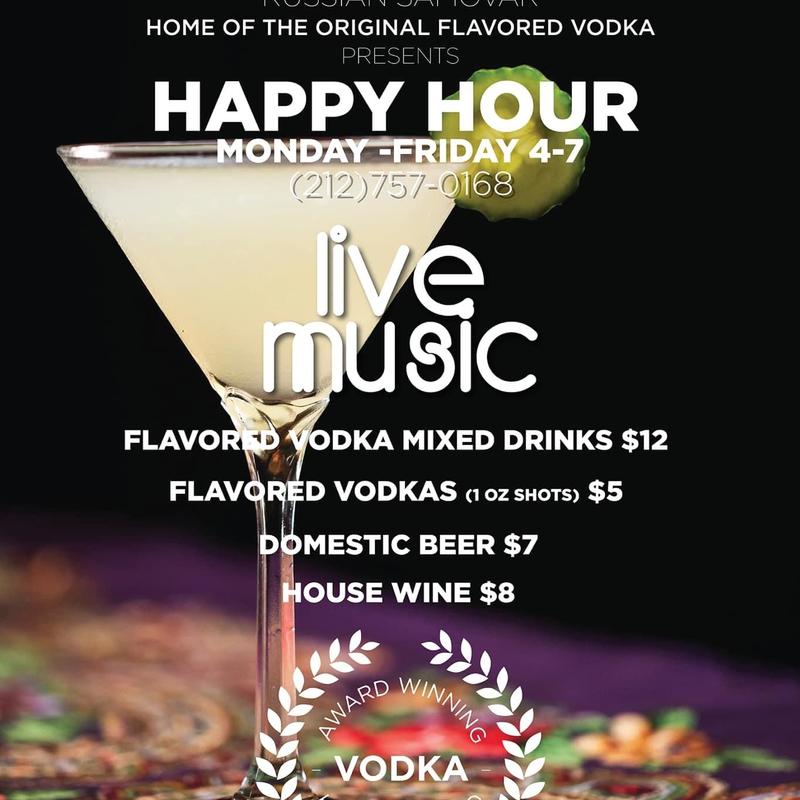 Are you looking for a restaurant to go to before or after a Broadway show? Russian Samovar is located right in the theater district in Manhattan, NY, and has live music. Full bar, incredible food, ambiance, and service. Indoor dining only. Don't forget to order a vodka flight and hot tea.