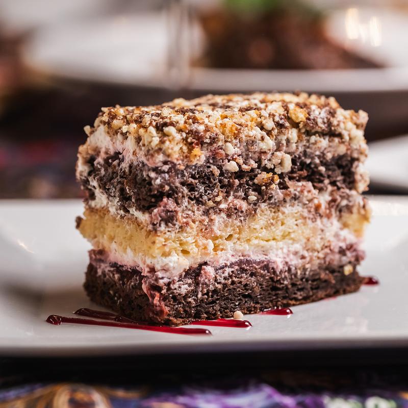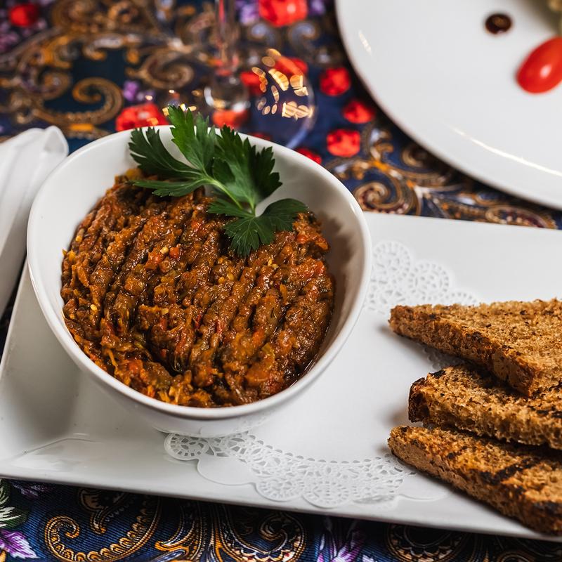 Fantastic place for fine dining on the northwest edge of the theater district...In my case, I had a Georgian savory spiced cheesy bread as a starter (Khachapuri), and then delightfully spiced, grilled lamb lollypops (Karski) which were fantastic, wrapping things up with a lovely apple strudel...